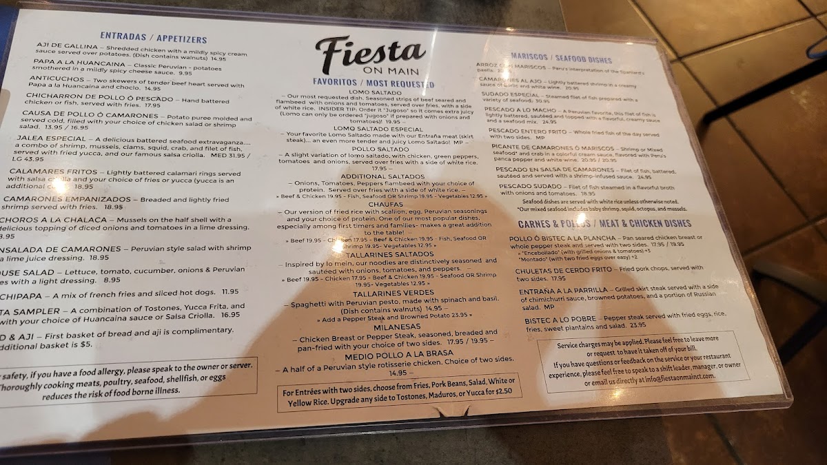 A slight variation of lomo saltado, with mixed seafood, peppers, tomatoes and onions, served over fries with a side of white rice. (No substitutions or special requests on the lunch menus)