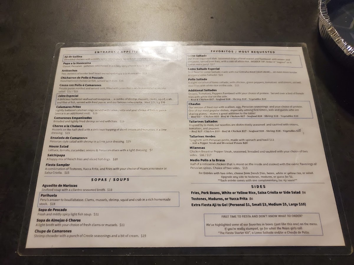 A slight variation of lomo saltado, with fish, peppers, tomatoes and onions, served over fries with a side of white rice. (No substitutions or special requests on the lunch menus)